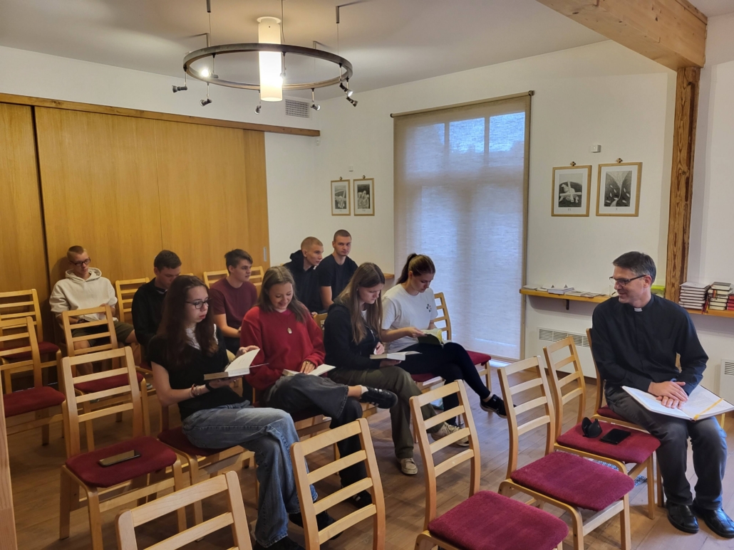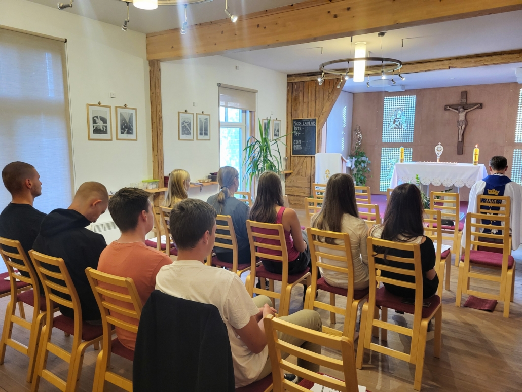 Suvisesse Pärnusse kogunesime 22. augusti õhtul. Olime ootusärevad, sest esmakordselt olid kohal ka kolm noormeest Viljandist. Kohapeal võttis meid vastu kogudusepreester isa Wodek ning peale põgusat tutvumist kogudusemaja ööbimisvõimalustega alustasime tähtsaimast – Jumalast. Esmalt lugesime ühiselt roosipärga, seejärel pühitses isa Wodek Missa. Kuna igal neljapäeval on Pärnu koguduses tavapäraselt kavas adoratsioon, veetsime järgnevad poolteist tundi koos Jeesusega Pühimas Altarisakramendis.